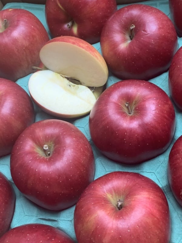 大きさ300~400gで円形。赤~濃赤色縞状の着色。果汁が多く、甘さも強く、香りもよく、甘酸適和で食味の変わらぬ裏切らない味で 今年もお届けいたします